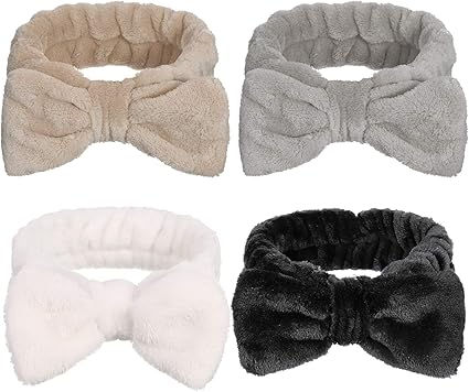 GOTH Perhk 4 Pack Spa Bowknot Hair Bands, Coral Fleece Makeup Headband Elastic H